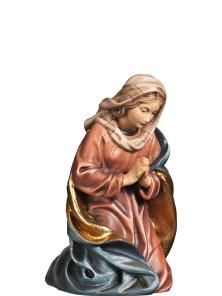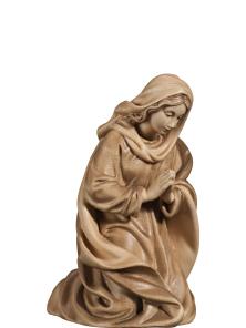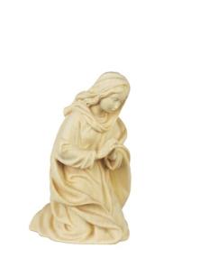 Maria betend der Fill Morgenland Krippe aus Ahornholz geschnitzt. Die anmutige Maria kniet neben der Holzwiege, in die sie das Jesuskind gelegt hat. Filigran geschnitzt sind die Gesichtszüge dieser betenden Maria.