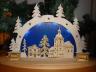 Mitterteicher Schwibbogen mit LED Beleuchtung und Lärchenholz Grundplatte mit Pfarrkirche St. Jakob Mitterteich und Alten Rathaus vorne 2 beleuchtete Marktbuden Breite 40cm,Höhe 25cm Auch ohne Ma...