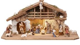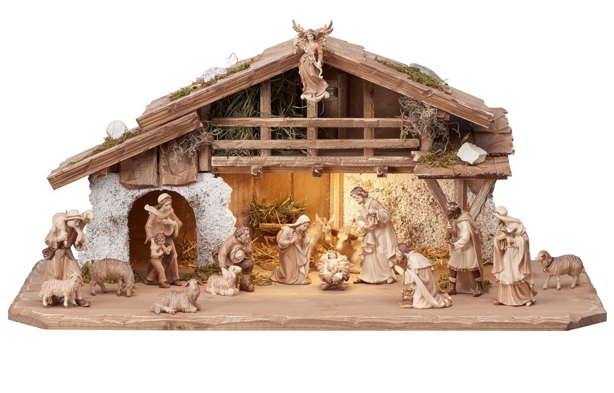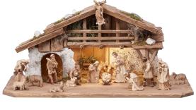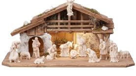 Über dieses Produkt: Kostner Krippen-Set, 17-teilig – mit Alpenstall und LED-Beleuchtung