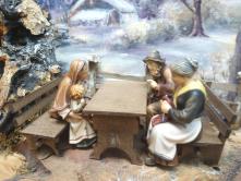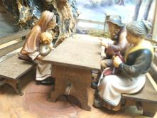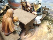 Sehr schöne Krippenszene mit sitzenden Figuren. Bestehend aus Oma strickend, Opa deutend, Frau mit Kind dazu 2 Bänke und ein Tisch im Tiroler Bauernstil. Alternativ könnte man auch Opa mit Pfeife Art. 801-090 dazusetzen.