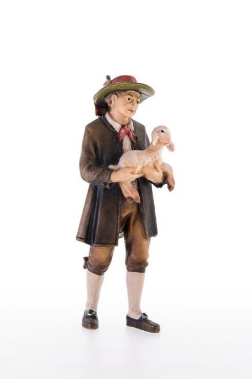 Hirt mit Lamm der Alpenländischen Krippe von Lepi. Diese Figuren werden nur in 12 cm Größe geschnitzt.