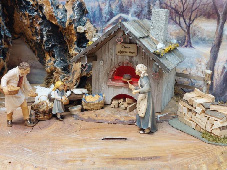 Der holzgeschnitzte Backofen für Lepi Krippenfiguren ist eine aufregende Neuheit für das Jahr 2024.