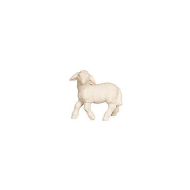Moderne Krippenfigur Lamm stehend linksschauend der Advent Krippe in Eschenholz geschnitzt und mit Wasserfarben bemalt