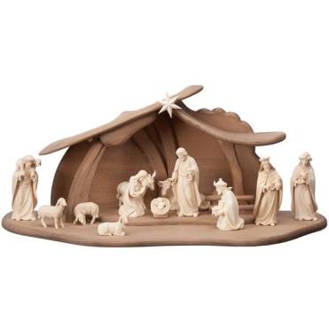 Modernes Set 14 teilig - Stall l der Advent Krippe in Eschenholz geschnitzt und mit Wasserfarben bemalt