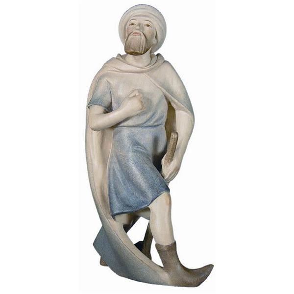 Der Kameltreiber ist eine eindrucksvolle Figur aus der Rowi-Krippenserie. Er trägt einen langen Mantel, einen Turban auf dem Kopf und einen gepflegten Bart im Gesicht. In seiner linken Hand hält er einen Stock, der seine Rolle als Führer und Begleiter von Kamelen unterstreicht. Durch seine Haltung und Kleidung vermittelt er Würde, Ruhe und orientalischen Flairs.