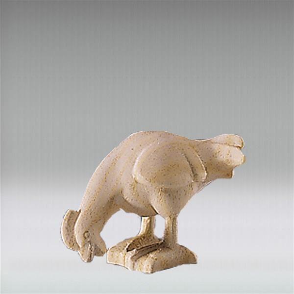 Henne pickendder Rowi Krippe in Eschenholz geschnitzt. Diese Figur ist von exquisiter Machart. Sie wirkt schlicht und von der Holzart lebendig und weist aber dennoch viele detailfreudig ausgearbeitete Einzelheiten auf.