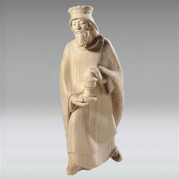 König weiss der Rowi Krippe in Eschenholz geschnitzt. Diese Figur ist von exquisiter Machart. Sie wirkt schlicht und von der Holzart lebendig und weist aber dennoch viele detailfreudig ausgearbeitete Einzelheiten auf.