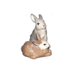 Holzgeschnitztes Kaninchenpaar der Salcher Krippe. Diese Tier Figur ist in den Größen 10cm,13cm und 17cm erhältlich