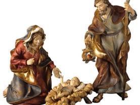 Hl. Familie in Bergahorn geschnitzt 4 teilig: Maria und Josef mit Jesukind und Wiege Die Heilige Familie steht im Mittelpunkt der Ulrichkrippe und wurde besonders gelungen umgesetzt. Josef und Maria sind Figuren im heimatlichen Stil, welche die einfachen Umstände, unter denen das Jesukind geboren wurde, gekonnt in Szene setzen. Das Jesus Kind in einer einfachen, mit goldfarbigen Stroh gefüllten Krippe ist geboren. Natürlich erhalten Sie bei Bestellung ein Original Hochglanzprospekt mit allen Figuren. Krippenfiguren Hl. Familie in Bergahorn geschnitzt 4 teilig: Maria und Josef mit Jesukind und Wiege Die Heilige Familie steht im Mittelpunkt der Ulrichkrippe und wurde besonders gelungen umgesetzt. Josef und Maria sind Figuren im heimatlichen Stil, welche die einfachen Umstände, unter denen das Jesukind geboren wurde, gekonnt in Szene setzen. Das Jesus Kind in einer einfachen, mit goldfarbigen Stroh gefüllten Krippe ist geboren.Natürlich erhalten Sie bei Bestellung ein Original Hochglanzprospekt mit allen Figuren.