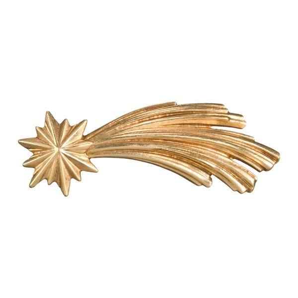 Original Fill Kometstern unbeleuchtet aus Ahornholz geschnitzt und in der Ausführung Color vergoldet. Der Stern dient den Hirten als Wegweiser auf ihrem Weg zum Stall in Bethlehem. Der Kometstern ist ein so bedeutsames Element der Weihnachtsgeschichte, dass viele ihn entweder am Dach des Krippenstalls befestigen oder über den Stall hängen. Der Stern symbolisiert die große Bedeutung der Geburt von Jesus und tritt erst ab diesem Moment am dunklen Himmel der Heiligen Nacht in Erscheinung.