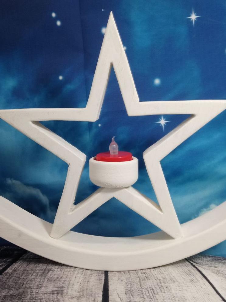 Holzstern mit Led Kerze