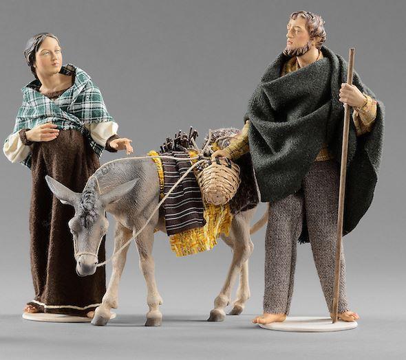 Die Figurengruppe besteht aus der schwangeren Maria, Josef und dem bepackten Esel. Man sieht den drei Figuren an, wie müde, erschöpft und entkräftet sie von ihrer langen und bisher vergeblichen Suche nach einer Herberge sind. Zugleich kann man spüren, wie die Hoffnung ihnen die nötige Kraft gibt, nicht aufzugeben. Maria und Josef tragen originalgetreue schlichte Kleidung.