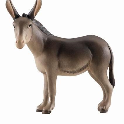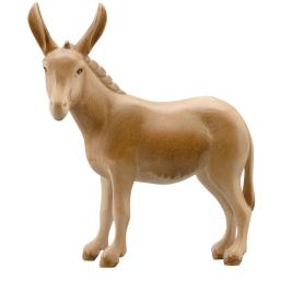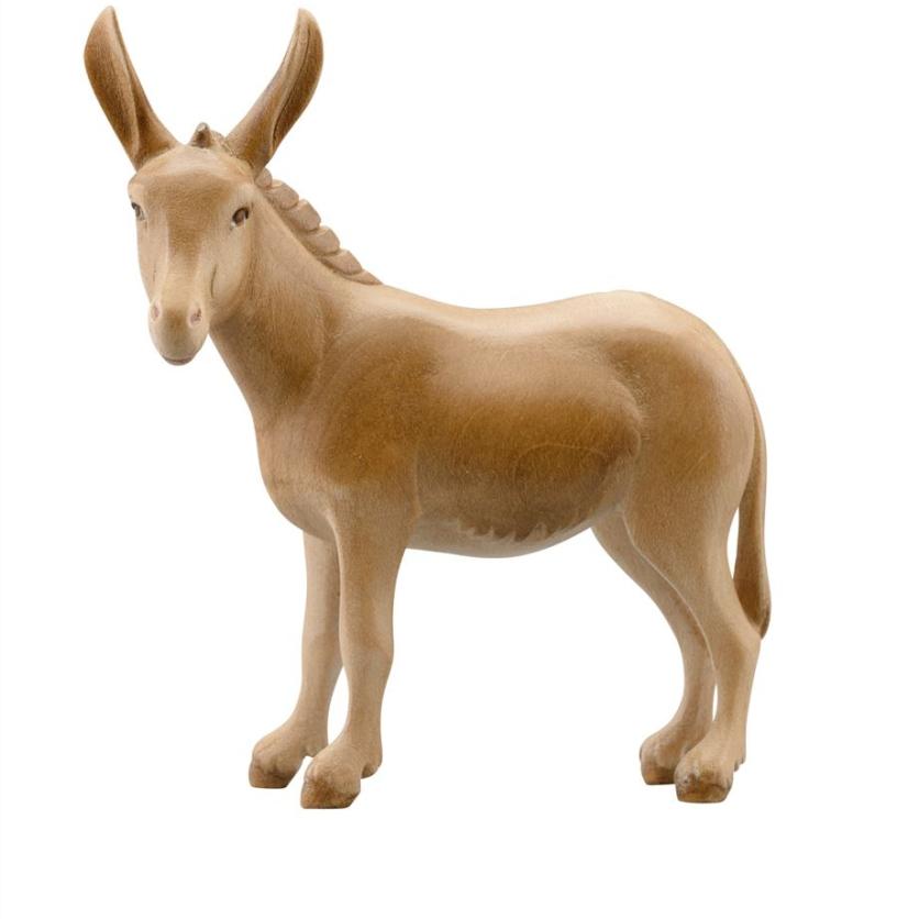Esel stehend der Insam Krippe wurde aus Bergahorn geschnitzt und in der Oberflächenausführung Color mit Ölfarben handbemalt. Ochs und Esel waren als erste im Stall, sie bewachen das Christkind und geben die erforderliche Wärme ab.