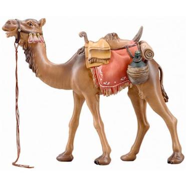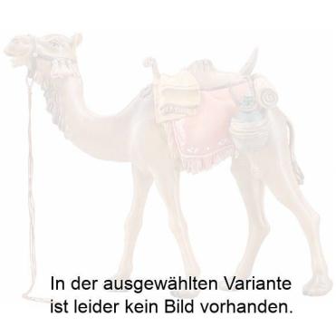 Die Krippenfigur Kamel stehend der Insam Krippe wird aus Bergahorn geschnitzt und in der Oberflächenausführung Color mit Ölfarben handbemalt.