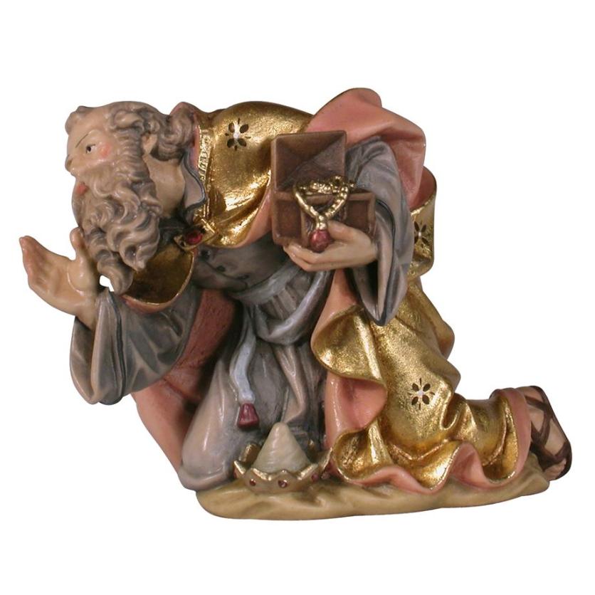 König kniend (Insam) der Insam Krippe wurde aus Bergahorn geschnitzt und in der Oberflächenausführung Color mit Ölfarben handbemalt.