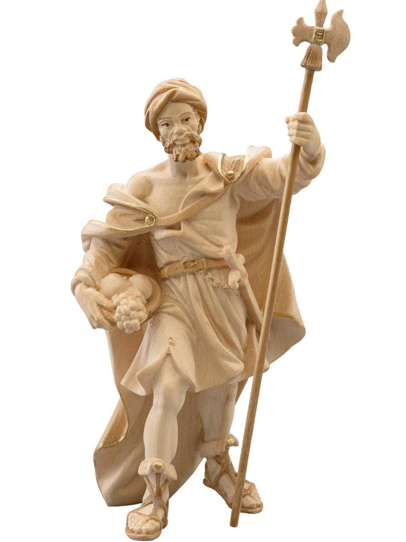 Erwecke deine Krippe zum Leben und verleihe ihr eine orientalische Note mit dem Soldaten der Insam Krippe. Diese holzgeschnitzte Krippenfigur aus Bergahorn ist ein wahrer Blickfang und verleiht deiner Weihnachtsdekoration eine einzigartige Note. Mit seiner Helebarde, dem Schutzschild und dem Turban ist er ein Wächter, der die Kamele und Elefanten beschützt und gleichzeitig eine besondere Atmosphäre in deine Krippe bringt.