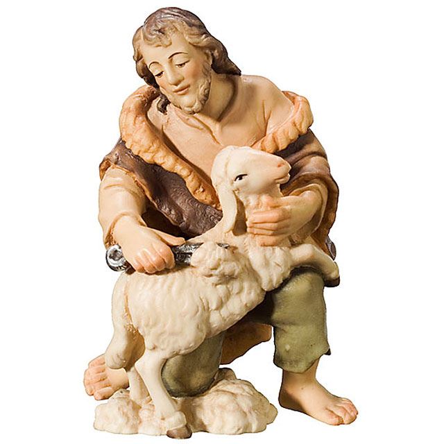 Diese kunstvoll gestaltete Holzfigur zeigt einen Schafscherer in sitzender Haltung, der mit geübter Hand eine Schere hält. Mit einer Hand hält er behutsam ein Schaf fest – ein detailreiches Motiv aus der königlichen Krippe. Das liebevoll gefertigte Krippenfigur verbindet traditionelle Handwerkskunst mit warmem Charme und bereichert jede Weihnachtskrippe auf stilvolle Weise.