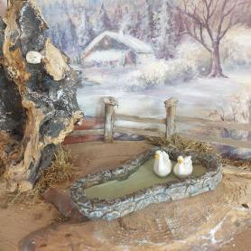 Der Teich misst 16 cm x 9 cm und passt perfekt in jede Weihnachtskrippe. Er kann leicht in die Landschaft integriert werden und bietet einen wunderschönen Blickfang. Die handbemalte Oberfläche des Teiches sorgt für ein naturgetreues Erscheinungsbild, das Ihre Krippe zum Leben erweckt.