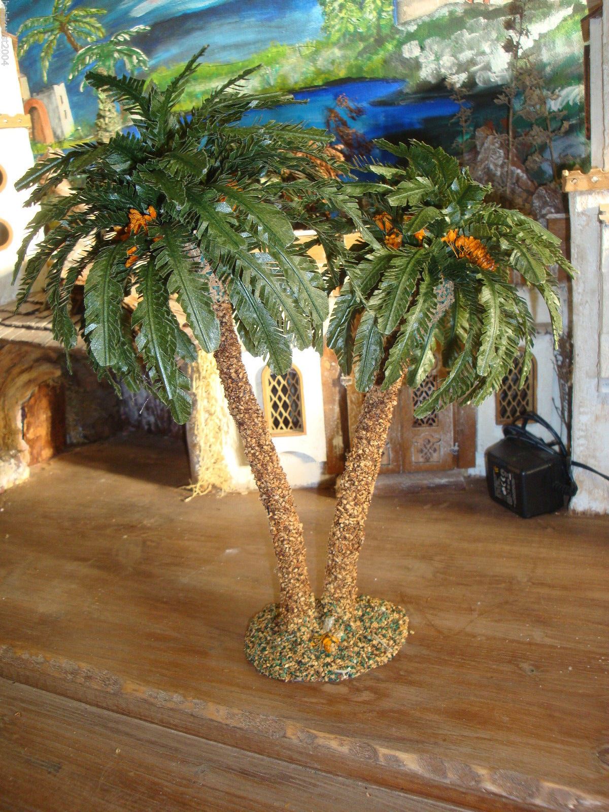 Die Dattelpalme gehört zu den ältesten in Palästina verbreiteten Obstbäumen.Stamm und Bodenplatte der Palme sind aus stabilen Kunststoff gefertigt, beflockt mit Kork. Palmzweige aus Spezialkunststoff mit Draht zum Formen der Wedel. Biblisch gehört die Palme zu den 7 Früchten des Kulturlandes und ist typisch für Palästina. Faktisch konnte man alle Teile der Dattel verwenden: Die Stämme lieferten Bauholz für Dächer und Zäune sowie Brennholz. Aus den Blättern stellte man Matten und Körbe her. Daneben dienten sie auch als Viehfutter. Die Endknospen verarbeitete man als Palmkohl. Die Dattelfrüchte wurden frisch, und getrocknet gegessen und zu Sirup gepresst (Dattelhonig).