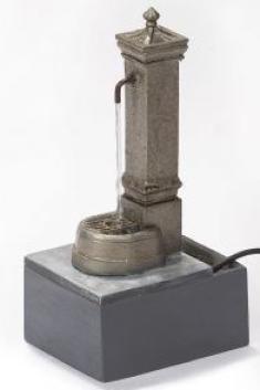 Unsere Römische Brunnensäule ist aus hochwertigem Kunststoff-Resin gefertigt und verfügt über eine Gesamthöhe von 16 cm. Für den echten Wasserlauf sorgt eine 220 Volt Pumpe, die im Lieferumfang enthalten ist. Der Wasserbehälter ist zum Unterbodeneinbau vorgesehen und bietet eine Sichthöhe der Säule von 11 cm. Diese ist ideal für Figurengrößen von 10-13 cm geeignet.