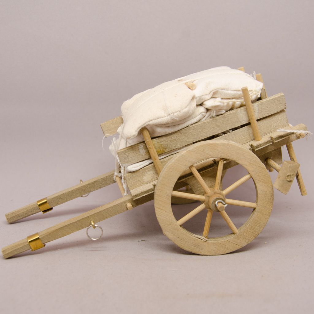 Dieser Karren einachsig mit Stoffsäcken beladen und ist für Figurengröße 9 cm und 12 cm bestellbar