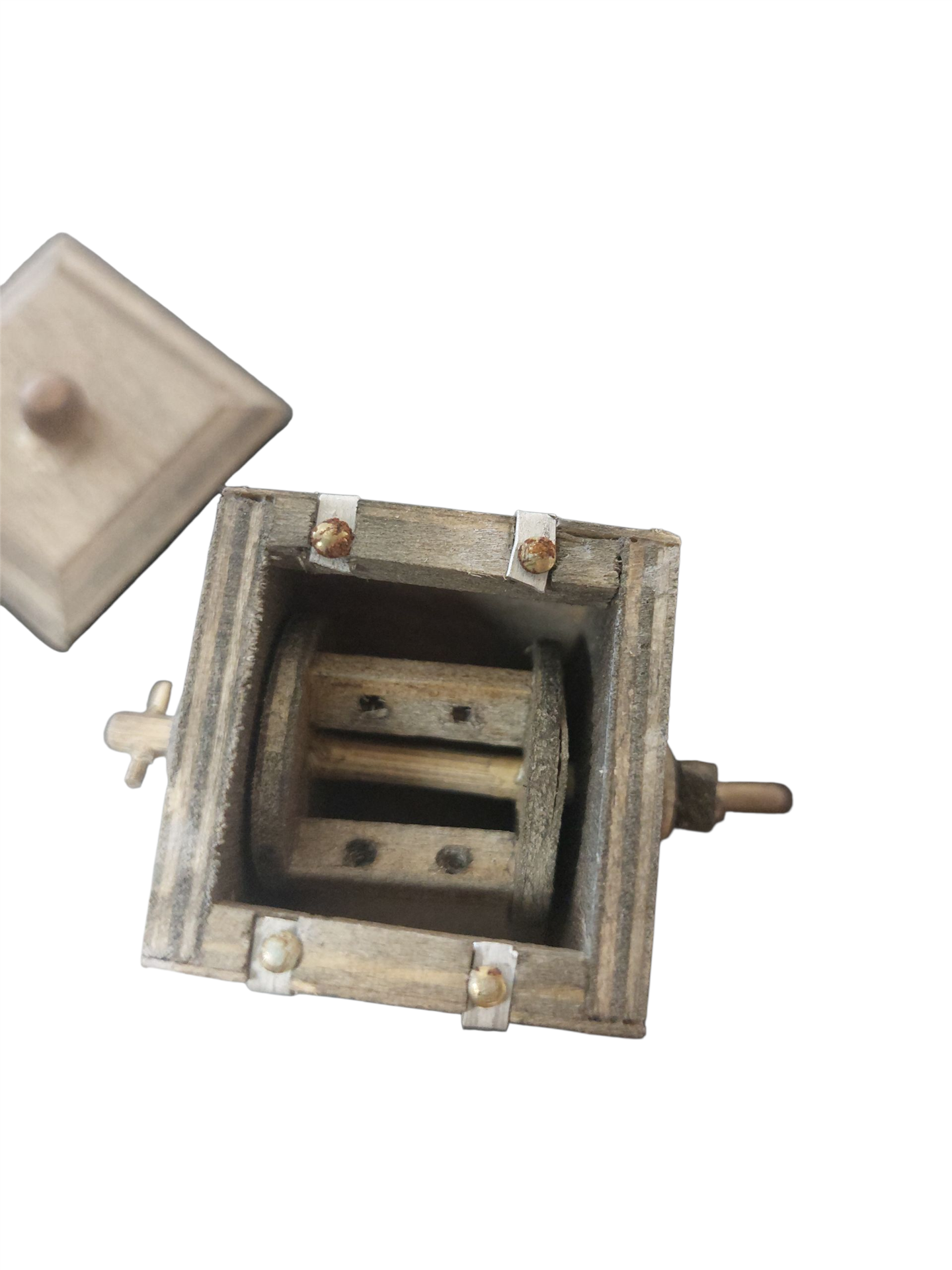 Entdecken Sie unser hochwertiges Krippenzubehör: die Waschtrommel in zwei Größen, die durch ihre detailgetreue Gestaltung beeindruckt. Jede Trommel ist so realistisch gefertigt, dass sie durch Drehen der Kurbel tatsächlich in Bewegung gesetzt werden kann – ein faszinierendes Element, das Ihre Krippenszenen mit lebendiger Authentizität bereichert. Dieses liebevoll gefertigte Produkt fügt sich harmonisch in jede Weihnachtskrippe ein und unterstreicht die traditionelle Handwerkskunst, die bei www.krippen2004.de zu Hause ist. So schaffen Sie eine stimmungsvolle, heimatverbundene Atmosphäre, die Groß und Klein begeistert.