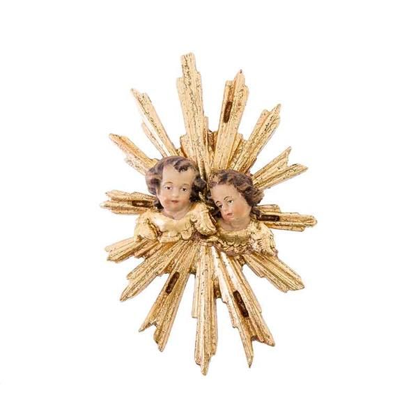 Die festliche, goldene Gloriole mit zwei Engelsköpfen ist ein wunderschönes weihnachtliches Detail zur Anbringung über dem Krippenstall. Die Gloriole wurde mit viel Gefühl für die Details in liebevoller Handarbeit aus Bergahorn geschnitzt und mit Ölfarben handbemalt. Ein kleines Metallzertifikat garantiert das Original.