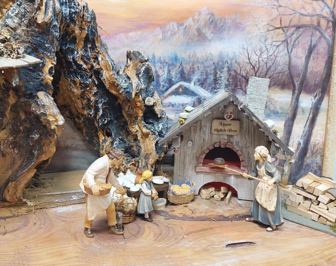 Mit handgeschnitzten Holzbackofen, der mit Räucherkerzen eine tolle realistische Krippenszene in Ihre Weihnachtskrippe bringt