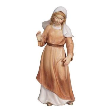 Moderne Krippenfigur Hirtin der Advent Krippe in Eschenholz geschnitzt und mit Wasserfarben bemalt