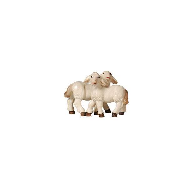 Moderne Krippenfigur Lammgruppe der Advent Krippe in Eschenholz geschnitzt und mit Wasserfarben bemalt