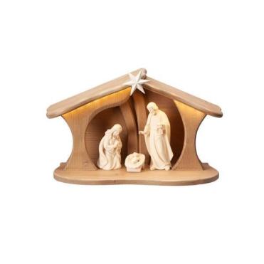 Modernes Set 5 teilig - Familienstall Luce Led der Advent Krippe in Eschenholz geschnitzt und mit Wasserfarben bemalt