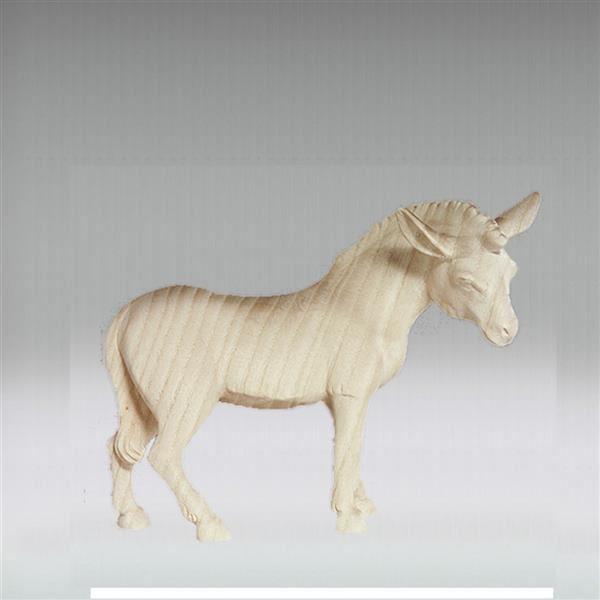 Esel stehend der Rowi Krippe in Eschenholz geschnitzt. Diese Figur ist von exquisiter Machart. Sie wirkt schlicht und von der Holzart lebendig und weist aber dennoch viele detailfreudig ausgearbeitete Einzelheiten auf.