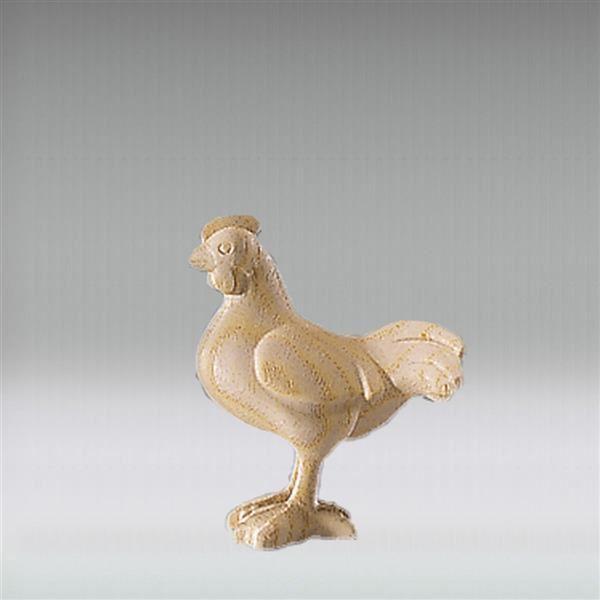 Henne der Rowi Krippe in Eschenholz geschnitzt. Diese Figur ist von exquisiter Machart. Sie wirkt schlicht und von der Holzart lebendig und weist aber dennoch viele detailfreudig ausgearbeitete Einzelheiten auf.