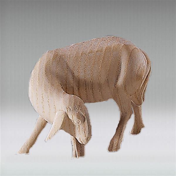 Schaf zurückschauend der Rowi Krippe in Eschenholz geschnitzt. Diese Figur ist von exquisiter Machart. Sie wirkt schlicht und von der Holzart lebendig und weist aber dennoch viele detailfreudig ausgearbeitete Einzelheiten auf.