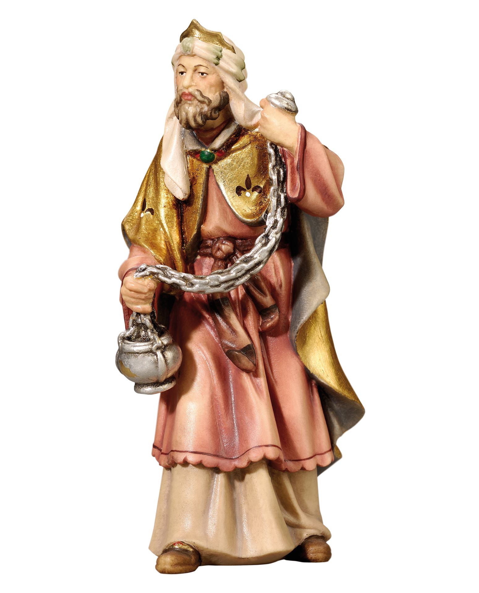 Der König weiss stehend der Simon Krippe wurde aus Bergahorn geschnitzt und in der Oberflächenausführung Color mit Ölfarben handbemalt.